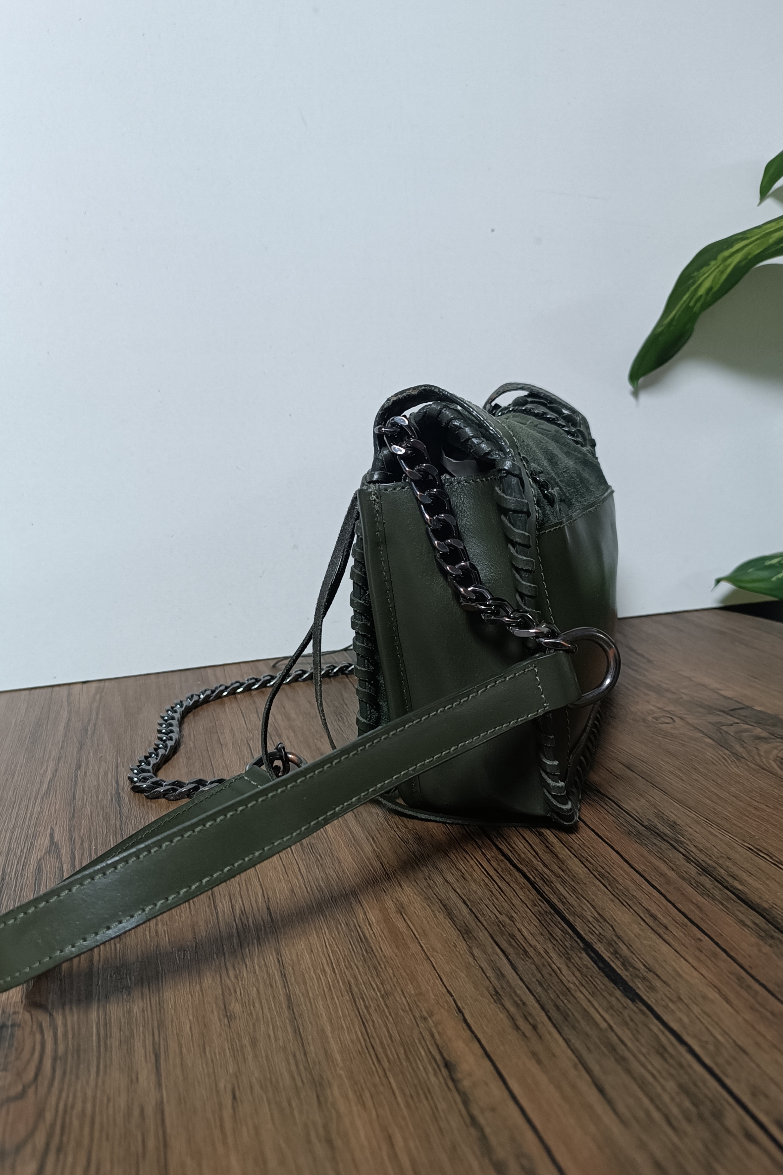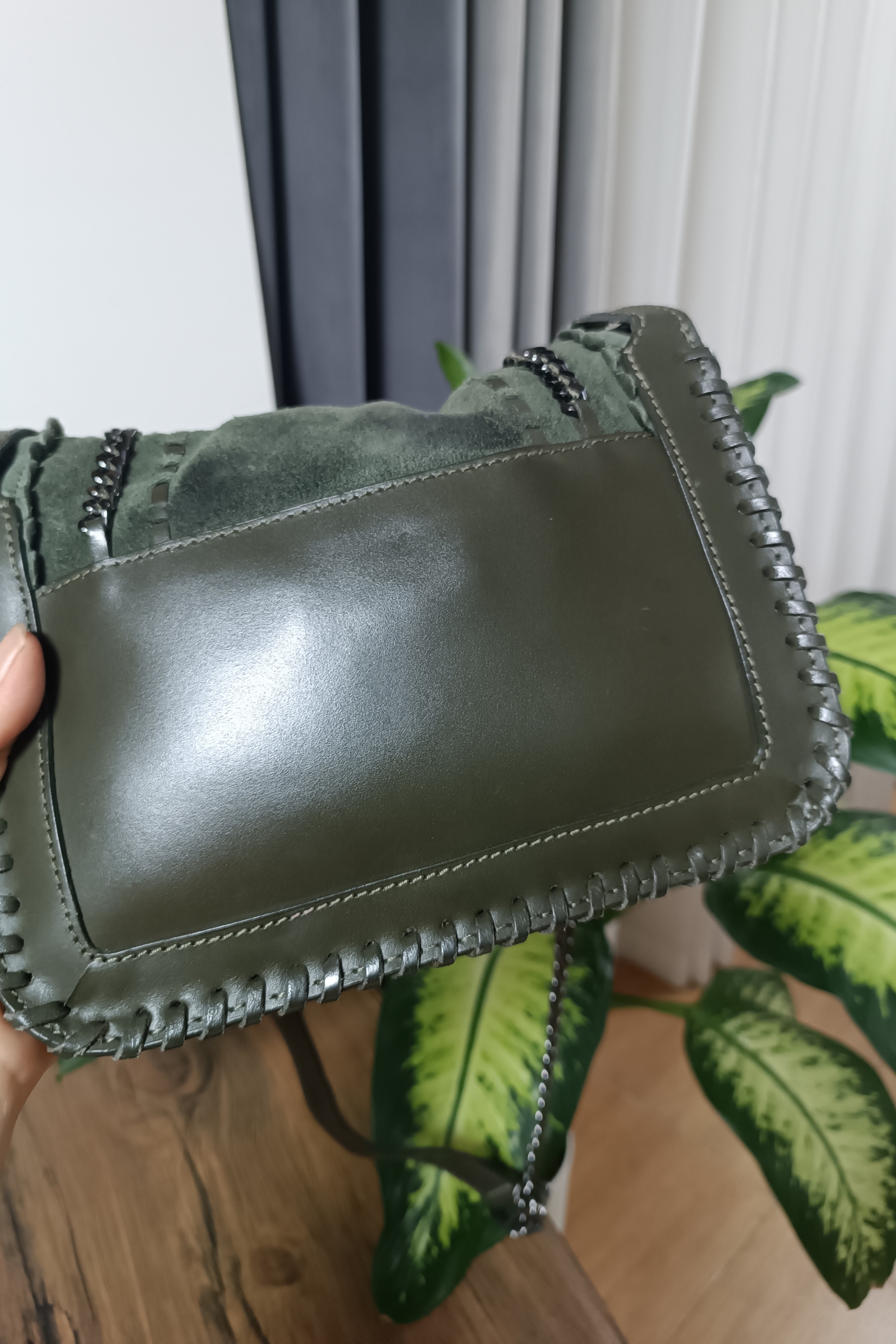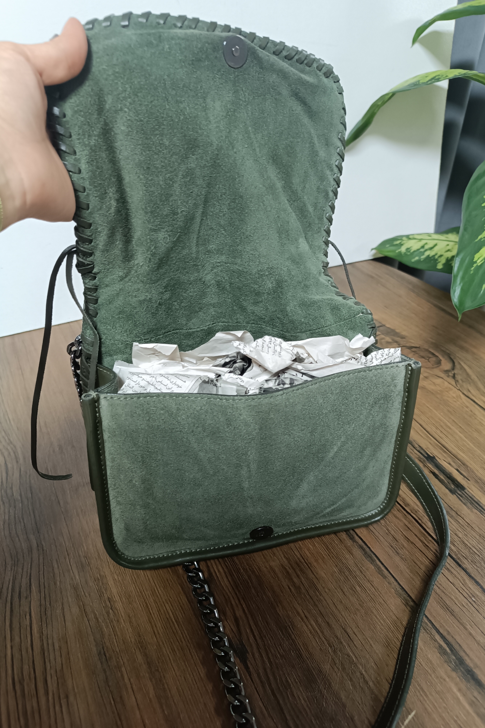 کیف سبز چرم و مخمل